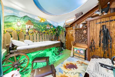 Наши авторские номера – «Владыка морей», «Восточный сон», «Небеса обетованные», «Шахматная партия», «Вечерок на хуторе» и «Малиновое авто» – перенесут вас в захватывающий мир фантазий. Здесь вы сможете качаться на облаке, отдохнуть на дне океана, почувствовать атмосферу деревенского уюта, воплотить гармонию шахматного баланса или переночевать прямо в стильном кабриолете.